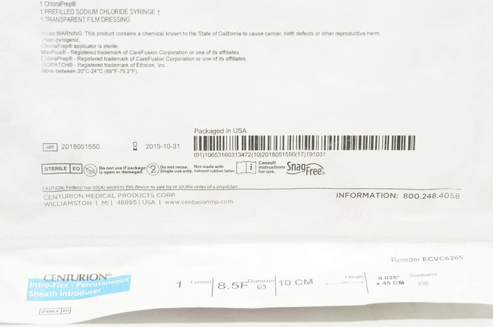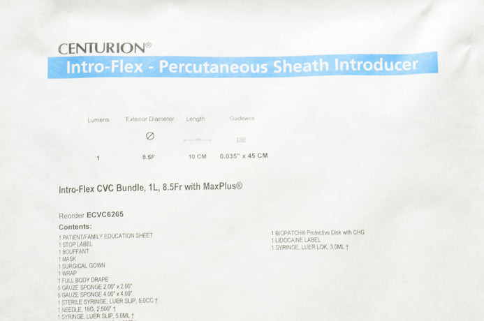 - Centrum ECVC6265 Intro-Flex Percutaneous Sheath Introducer 1 Lumen 8.5F 10cm (x)