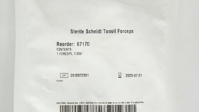 Centurion 67170 Sterile Schnidt Tonsil Forcers 7.500
