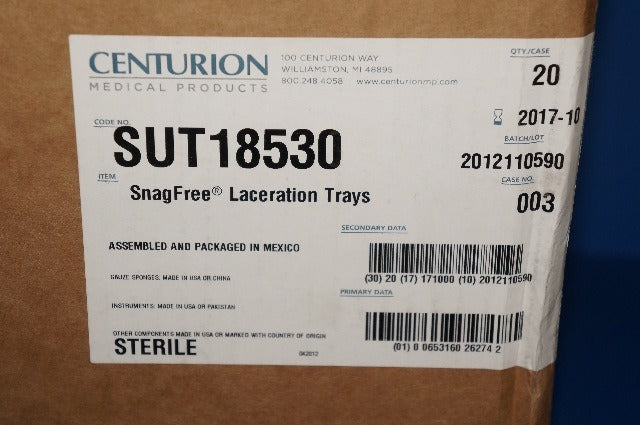 Centurion SUT18530 SnagFree Laceration Trays ~ Box of 20