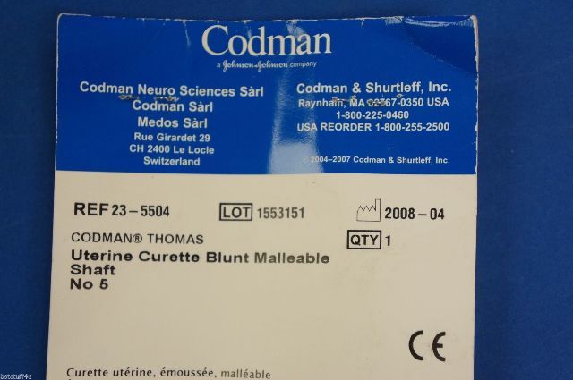 Codman 23-5504 Uterine Curette Blunt Malleable Shaft No 5
