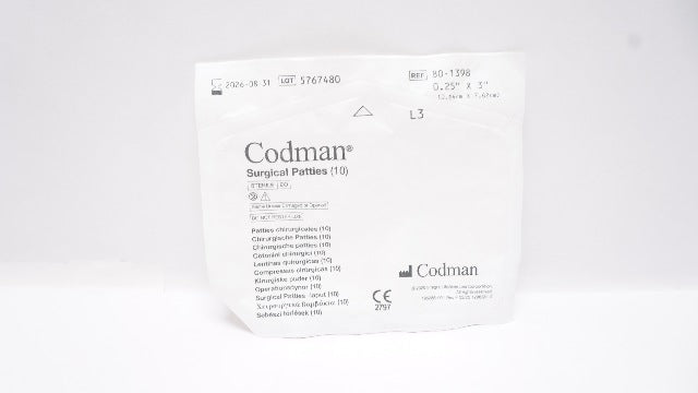 - Codman 80-1398 Surgical Patties, 0.25inch x 3inch - Pack of 10