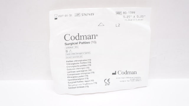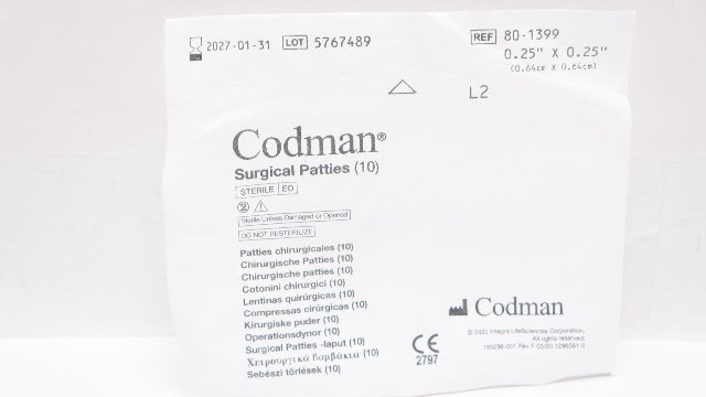 - Codman 80-1399 Surgical Patties 0.25In x 0.25In - Pack of 10