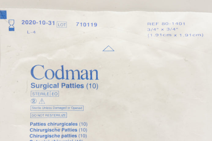 - Codman 80-1401 Surgical Patties 3/4 x 3/4 inch - Pack of 10 (x)