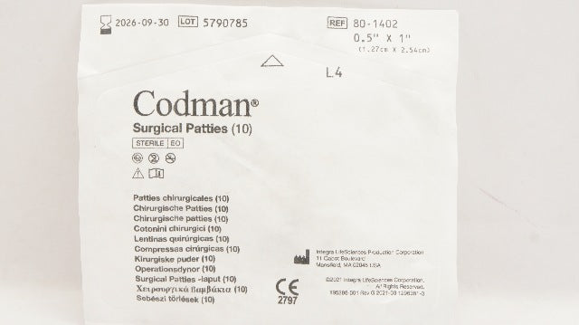 - Codman 80-1402 Surgical Patties 0.5inch x 1inch - Pack of 10