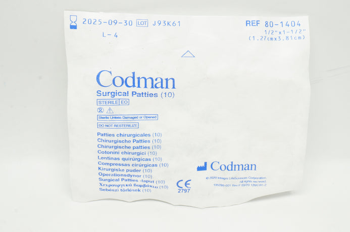 - Codman 80-1404 Surgical Patties 1/2inch x 1-1/2inch - Pack of 10