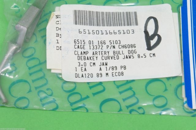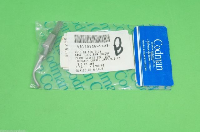 - Codman 92-6308 Clamp Artery Debakey 8.5 cm lg Curved Serated 1inch Jaw