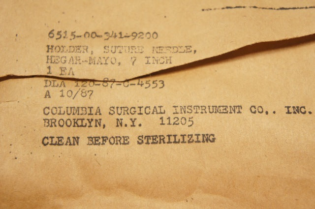 Iii part name assigned by controlling agency: holder suture needle hegar-mayo 7" lg central oval grooved jaws