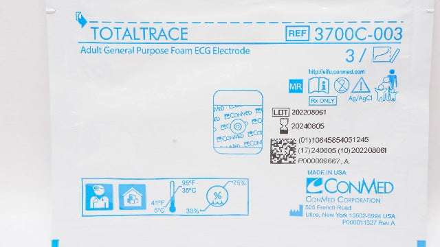 - ConMed 3700C-003 Totaltrace Adult General Purpose Foam ECG Electrode - Pack of 3