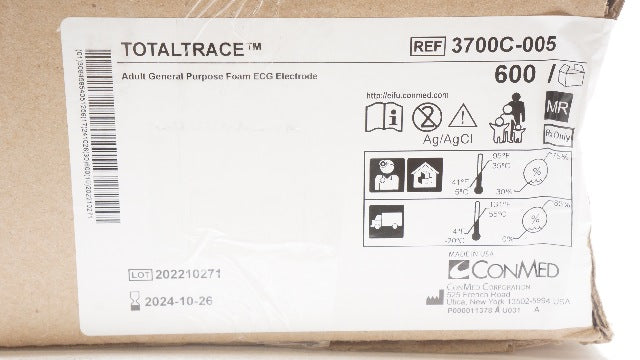 - ConMed 3700C-005 Totaltrace Adult General Purpose Foam ECG Electrode -Case of 600