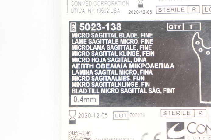 - Conmed 5023-138 Micro Sagittal Blade, Fine 9.5 x 25.5 x 0.4mm (x)