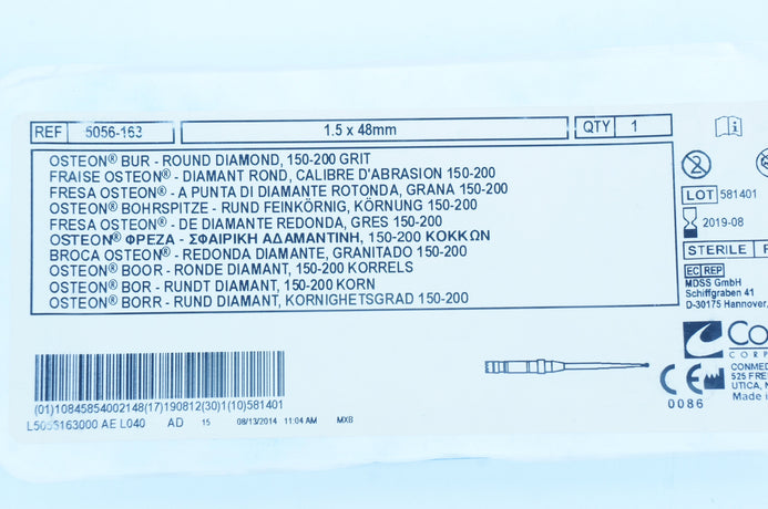 - ConMed 5056-163 Osteon Bur- Round Diamond,150-200 Grit, 1.5 x 48mm (x)