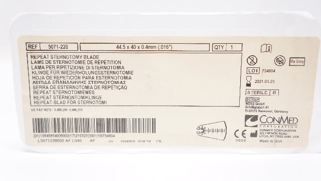 ConMed 5071-228 Repeat Sternotomy Blade 44.5 x 40mm x .016inch (x)
