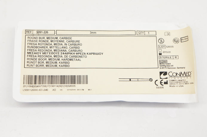 ConMed 5091-226 Round Bur, Medium, Carbide (x) - Box of 4
