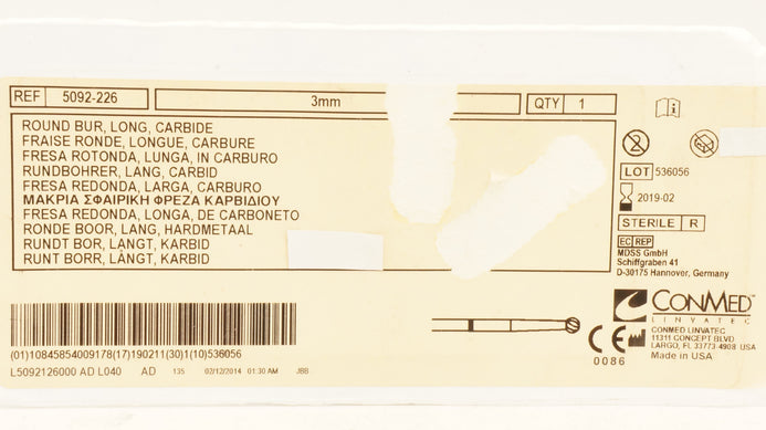 - ConMed 5092-226 Round Bur Long Carbide 3mm (x)