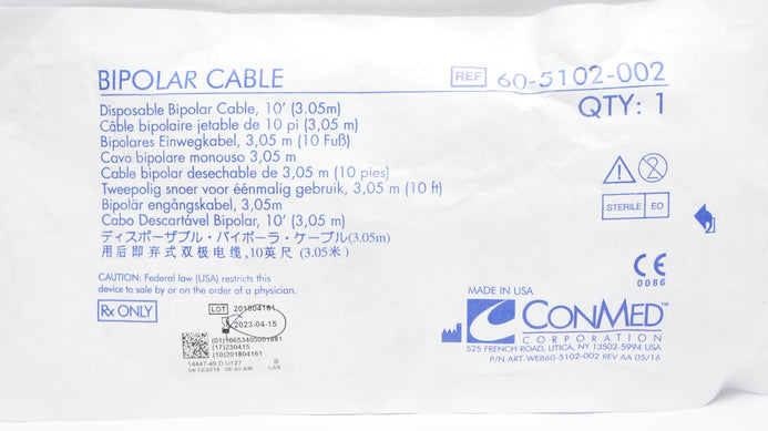 ConMed 60-5102-002 Disposable Bipolar Cable 10 Ft. (x)