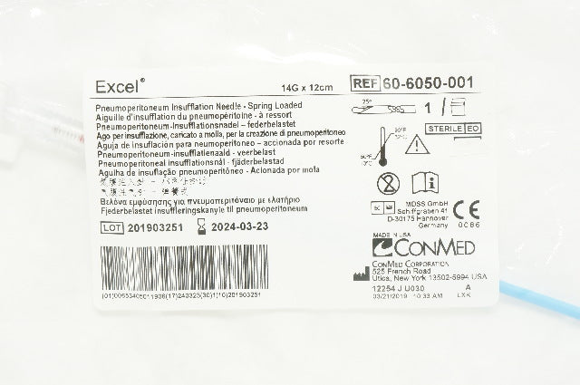 - ConMed 60-6050-001 Excel Pneumoperitoneum Insufflation Ndle 14 G x 12cm