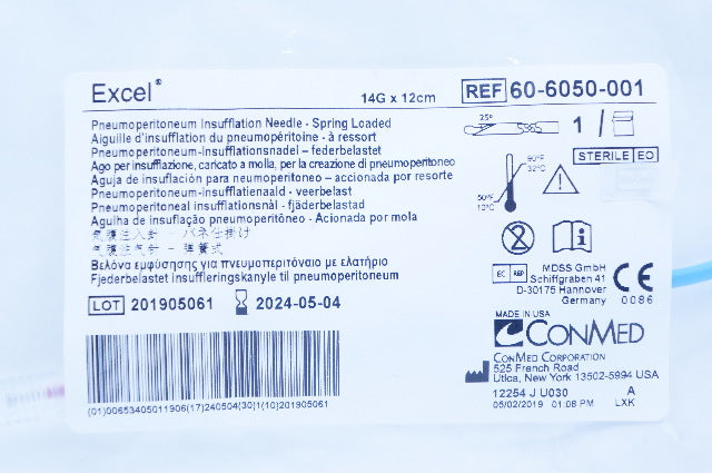 ConMed 60-6050-001 Excel Pneumoperitoneum Insufflation Needle Spring Loaded 14G x 12cm