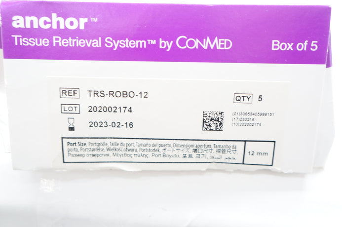 - Conmed TRS-ROBO-12 Anchor Tissue Retrieval System 12mm - Box of 5