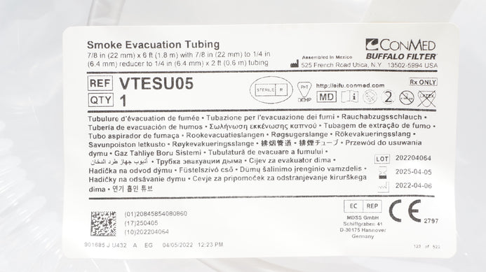 - ConMed VTESU05 7/8In x 6Ft W/7/8In x to 1/4In Smoke Evacuation Tubing (x)