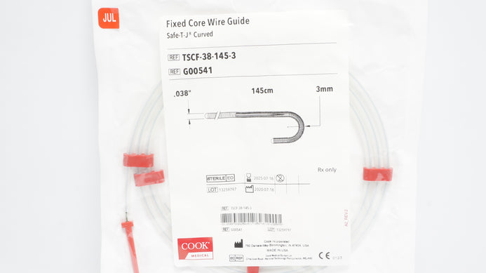 - Cook G00541 Fixed-Core Wire Guide, Safe-T-J Curved Tip, 0.038in. dia. x 145cm(x)