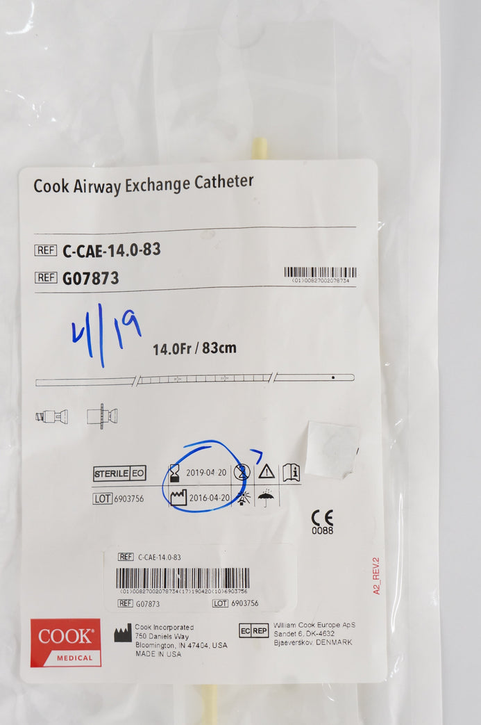 - Cook G07873 Airway Exchange Catheter with Rapi-Fit Adapters 14.0Fr x 83cm (x)