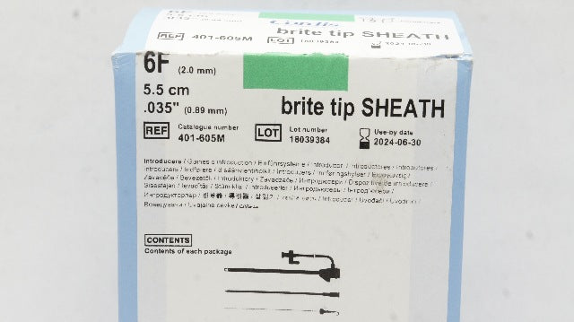 - Cordis 401-605M Brite Tip Sheath Introducer w/Mini-Wire 6F x 5.5cm - Box of 4