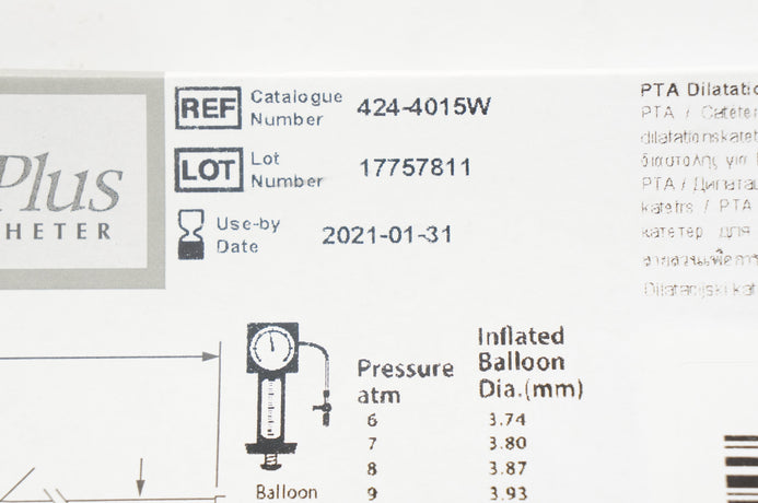 - Cordis 424-4015W Aviator Plus RX Balloon Cath. .014inch x 4.0 x 15mm x 142cm (x)