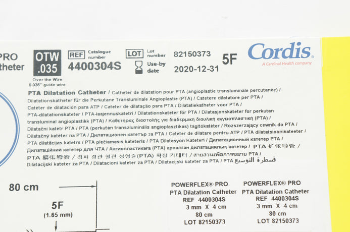 - Cordis 4400304S Powerflex Pro PTA Dilatation Cath. 3mm x 4cm x 80cm (x)