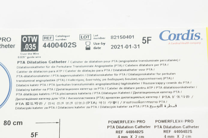 - Cordis 4400402S Powerflex PRO PTA Dilatation Cath. 4mm x 2cm x 80cm (x)