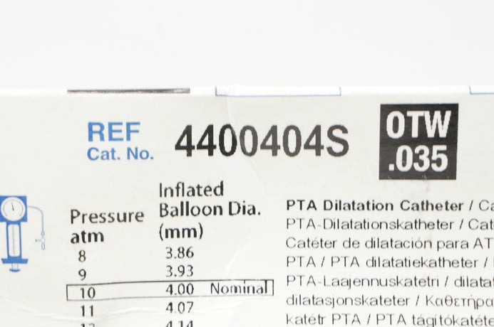 - Cordis 4400404S PTA Dilatation Catheter 5F 4mm x 4 cm (x)