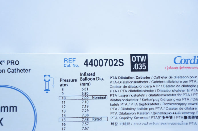 - Cordis 4400702S Powerflex Pro PTA Dilatation Cath. 7mm x 2 x 80cm,5F x.035in (x)