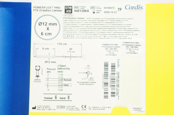 - Cordis 4401206X Powerflex PRO .035in. PTA Dilatation Cath. 12mm x 6cm x 135cm(x)