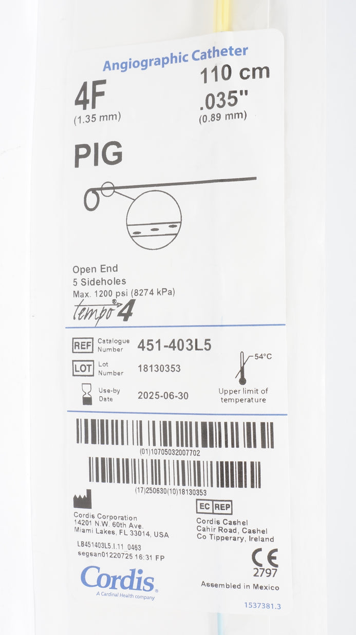- Cordis 451-403L5 Pig Tempo 4 Angiographic Catheter 4F x 110cm x .035in (x)
