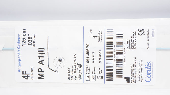 - Cordis 451-406P0 Tempo 4 Angiographic Cath. MP A1(I) 4F x 125 cm x .038inch