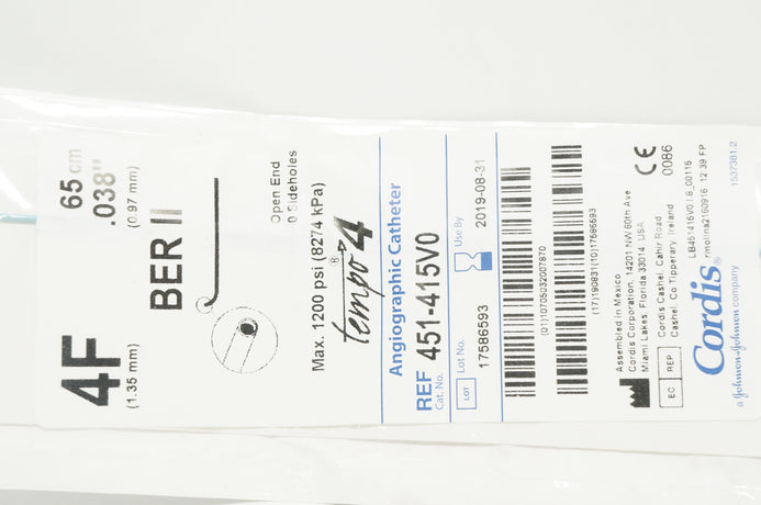 Cordis 451-415V0 BER II Angiographic Cath. 4F x 0.038inch (x)