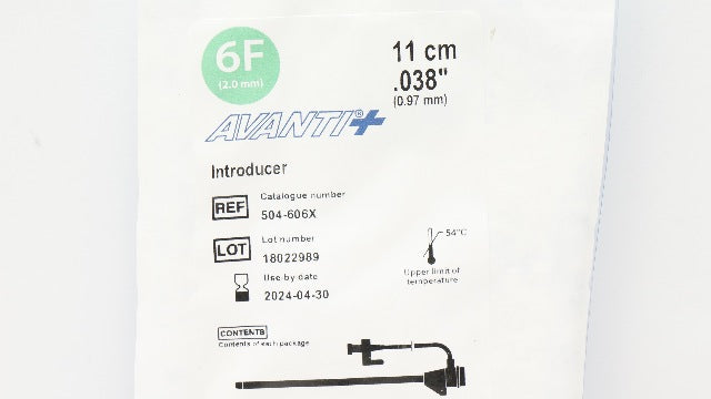 - Cordis 504-606X Avanti+ Introducer 6F x 11cm x .038 inch (x)