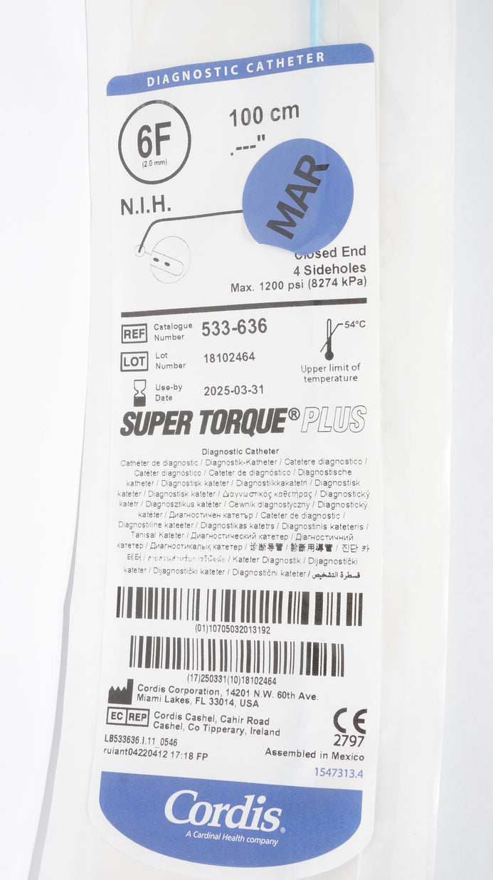 - Cordis 533-636 Super Torque Plus N.I.H. Diagnostic Cath. 6F x 100cm (x)