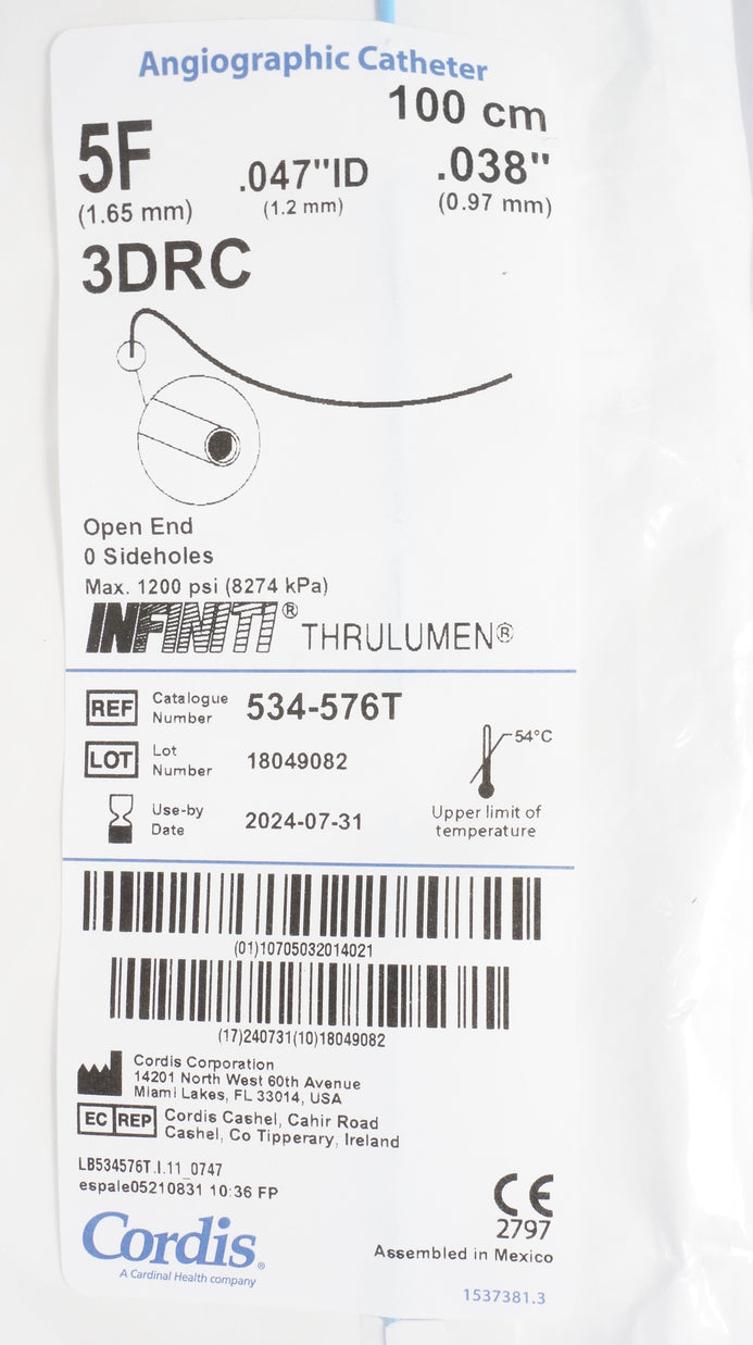 - Cordis 534-576T Infiniti Thrulumen Angiographic Catheters 3DRC 5F (x)