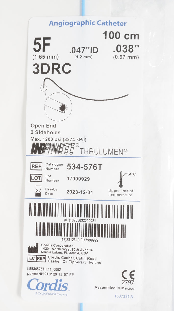 - Cordis 534-576T Infiniti Thrulumen Angiographic Catheters 3DRC 5F (x)