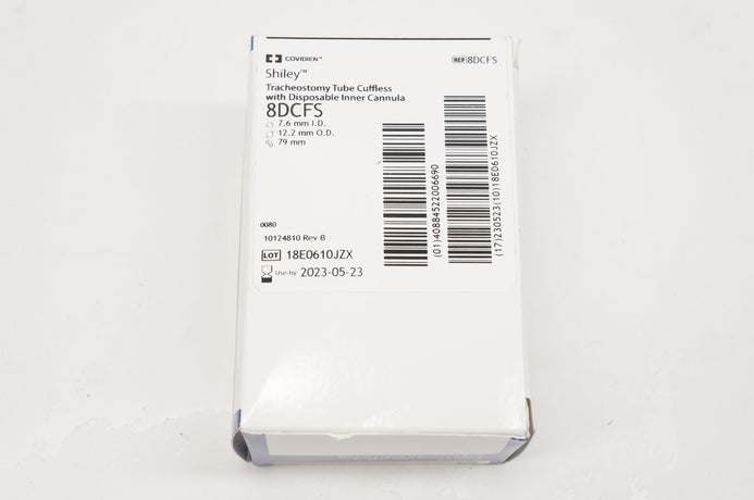 - Coviden 8DCFS Shiley Tracheostomy Tube Cuffless 7.6mm ID, 12.2m OD