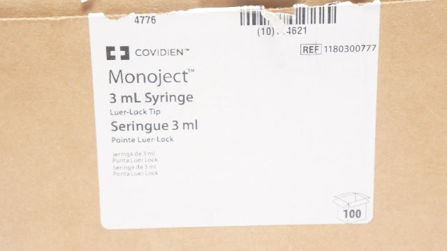 - Covidien 1180300777 Monoject 3ML Syringe Luer-Lock Tip - Box of 68