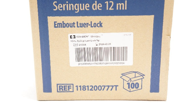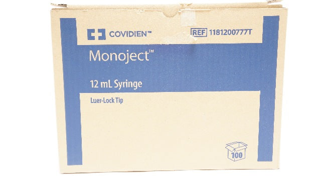 - Covidien 1181200777T Monoject Syringe, Luer-Lock Tip, 12mL - Box of 100