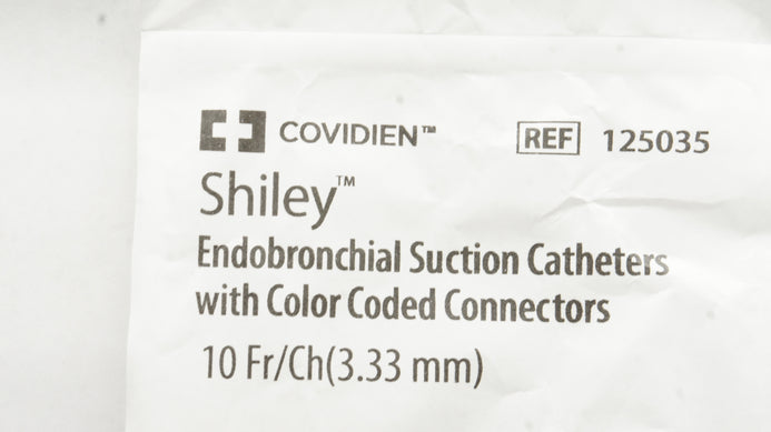 - Covidien 125035 Shiley Endobronchial Suction Caths. w/ Connectors 10Fr/Ch
