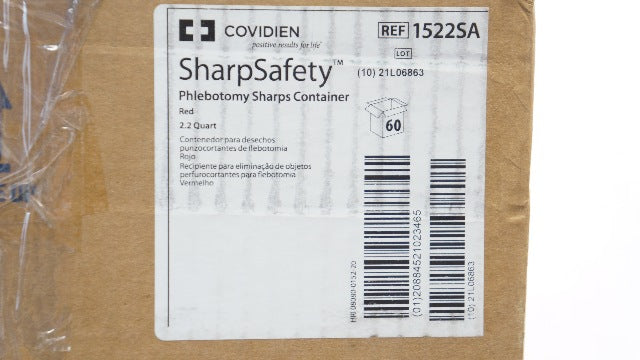 - Covidien 1522SA SharpSafety Phlebotomy Sharps Container Red 2.2 Quart-Case of 60