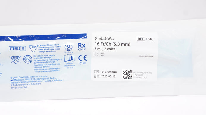 Covidien 1616 Dover Hydrogel Coated Latex Foley Catheter 16Fr/Ch 5mL 2-Way