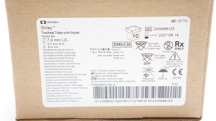 - Covidien 18770S Shiley Tracheal Tube 7.0mm ID x 9.5mm OD x 25.4mm - Box of 10