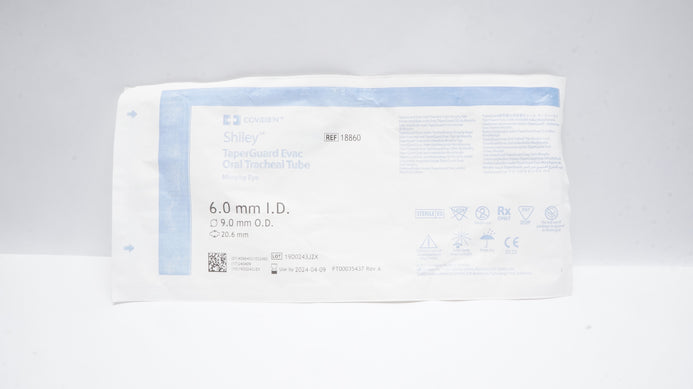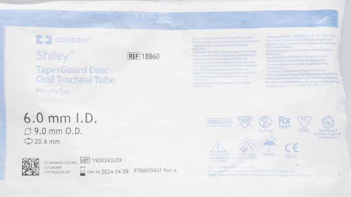 - Covidien 18860 Shiley TaperGuard Evac Oral Tracheal Tube 6.0ID x 9.0ODx20.6mm(x)