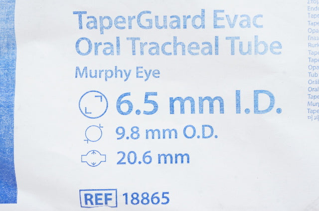 - Covidien 18865 Mallinckrodt TaperGuard Evac Oral Tracheal Tube 6.5mm x 9.8mm (x)