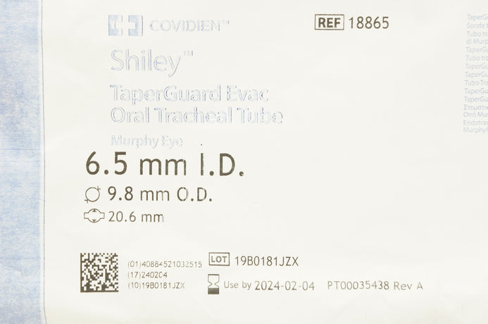 - Covidien 18865 Shiley Oral Tracheal Tube Murphy Eye 6.5 x 9.8 x 20.6mm