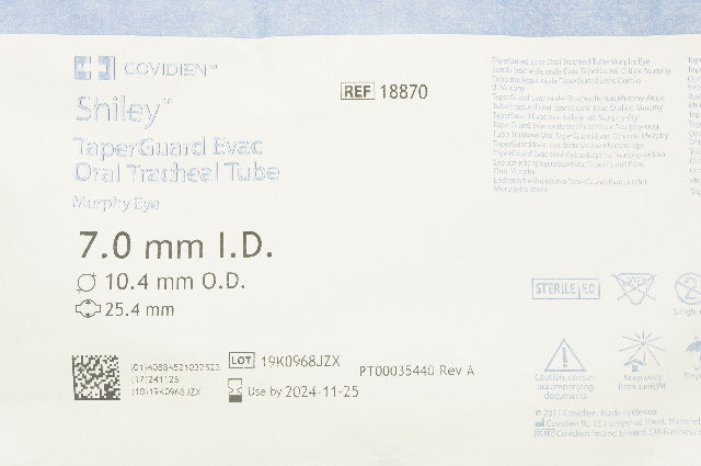 - Covidien 18870 Shiley TaperGuard Evac Oral Tracheal Tube 7.0mm ID, 10.4mm OD